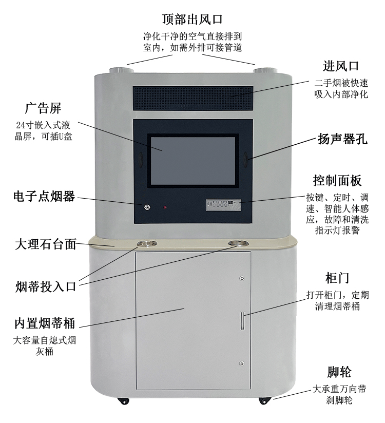 91香蕉国产成人APP吸煙室空氣淨化機,內置高壓靜電場(電子集塵室)+層流過濾網+活性炭吸附+負氧離子功能,高效淨化清新室內空氣。